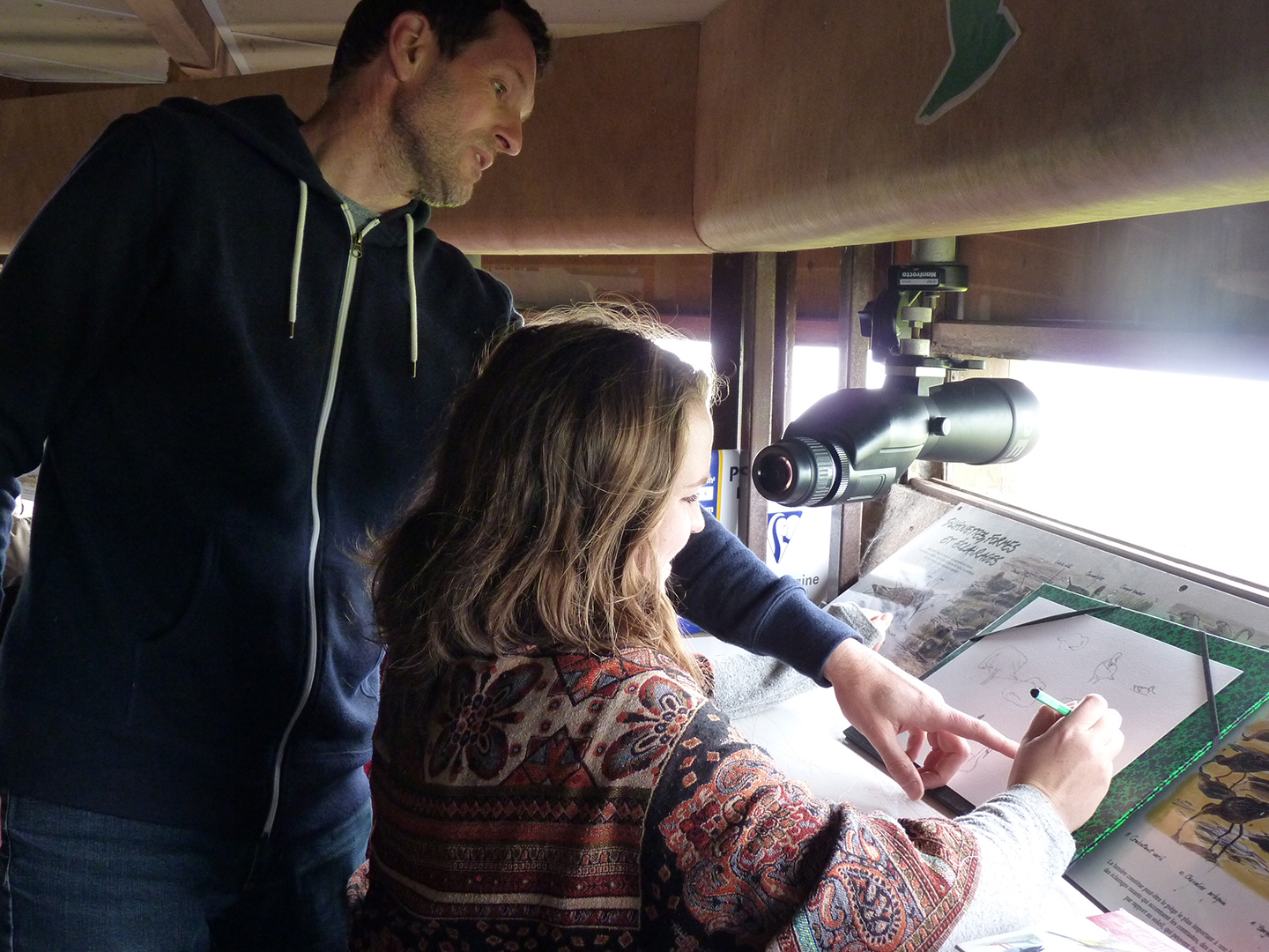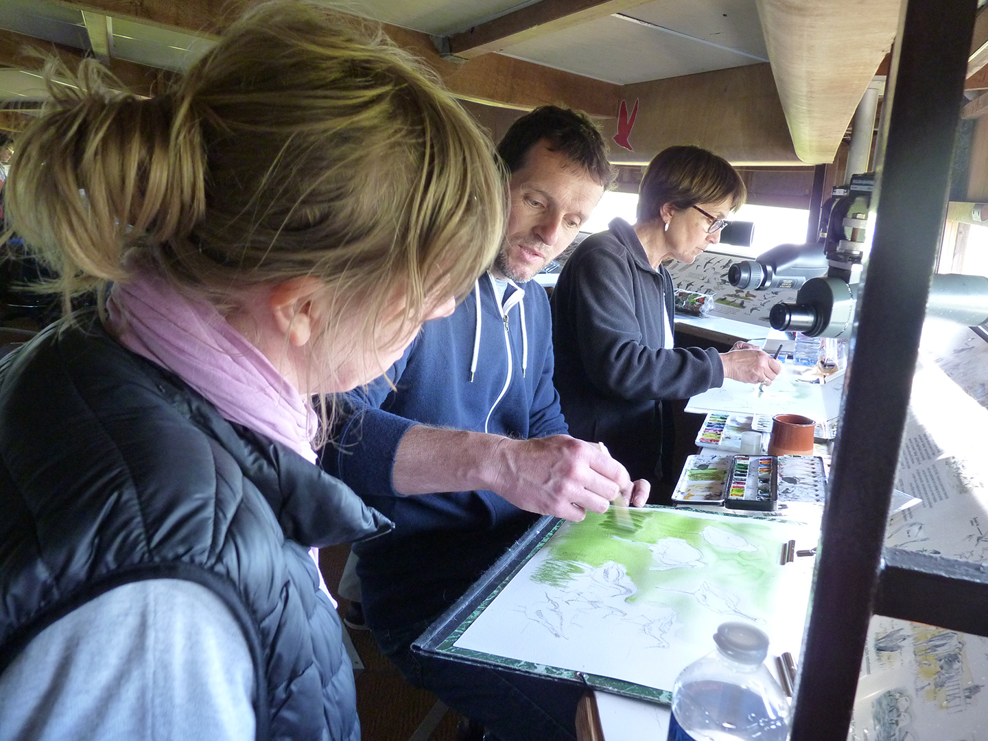 In the end, I opted for the drawing session organised by Olivier Loir. I wanted to try drawing birds “in action”. So off I went, armed with binoculars, sketch pad and pencils!