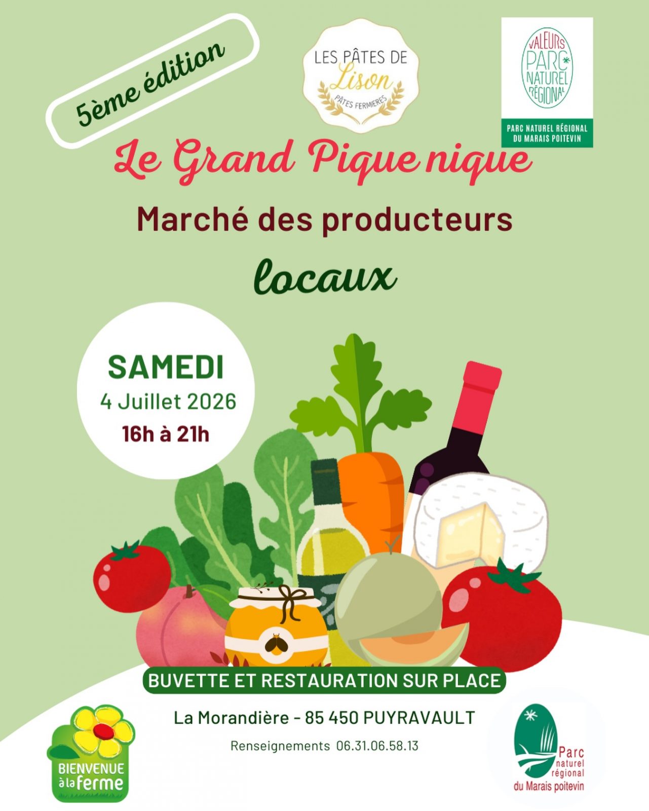 The Grand Pique-nique du Parc naturel régional du Marais poitevin offers a local meal, 100% "Valeurs Parc naturel régional" branded. Meet your local producers. Free concert at the end of the day.
