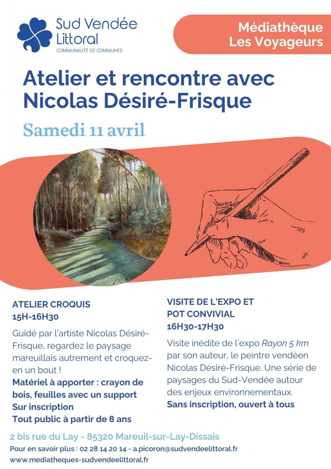 An original visit to the Rayon 5 km exhibition by its creator, the Vendée painter Nicolas Désiré-Frisque. A series of landscapes from the south of Vendée focusing on environmental issues.