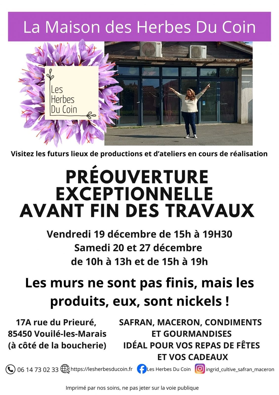 Come and discover the future production sites and workshops currently under construction, and find delicious products to enhance your festive meals and gifts: saffron, maceron, condiments and delicacies!