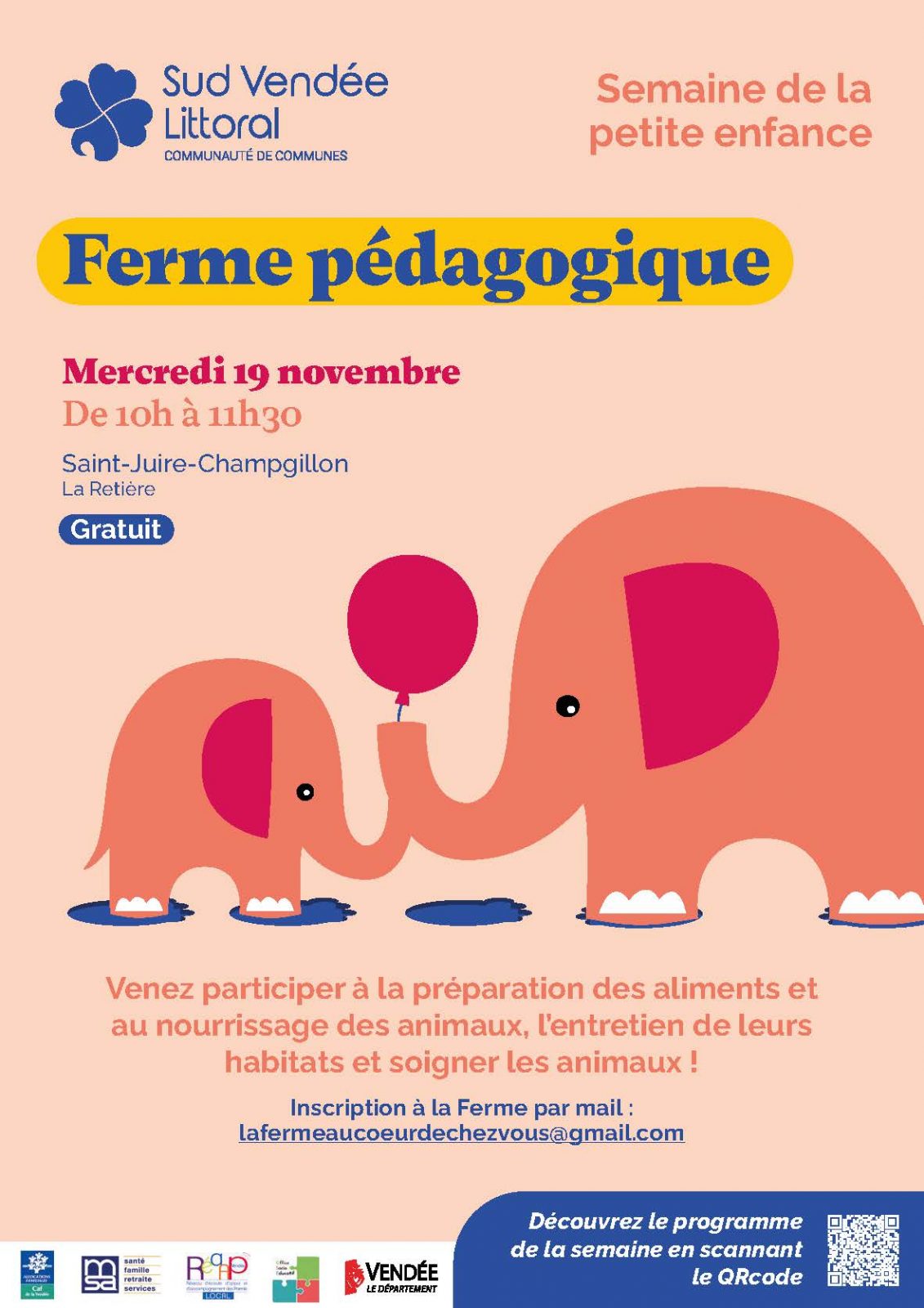 Registration at the farm by email: lafermeaucoeurdechezvous@gmail.com