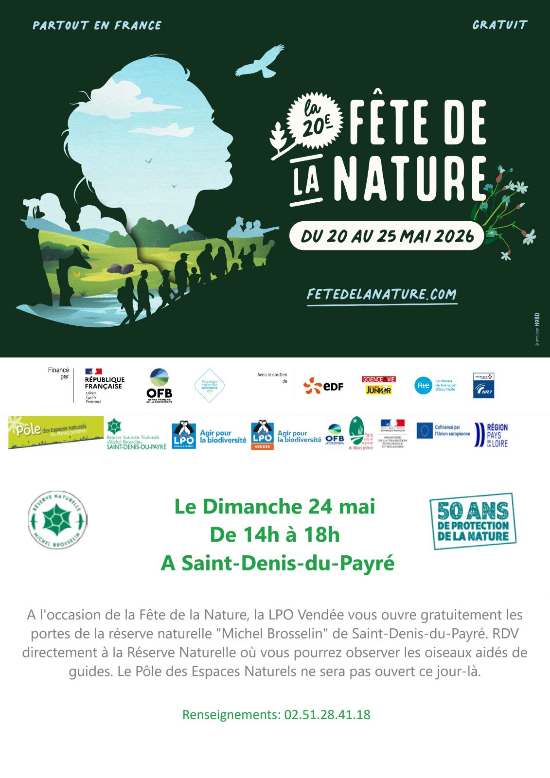 As part of the Fête de la Nature, the LPO Vendée is opening the doors of the "Michel Brosselin" nature reserve in Saint-Denis-du-Payré to you free of charge. Meet up directly at the nature reserve, where you can watch the birds with the help of guides. The Pôle des espaces naturels will not be open on this day.