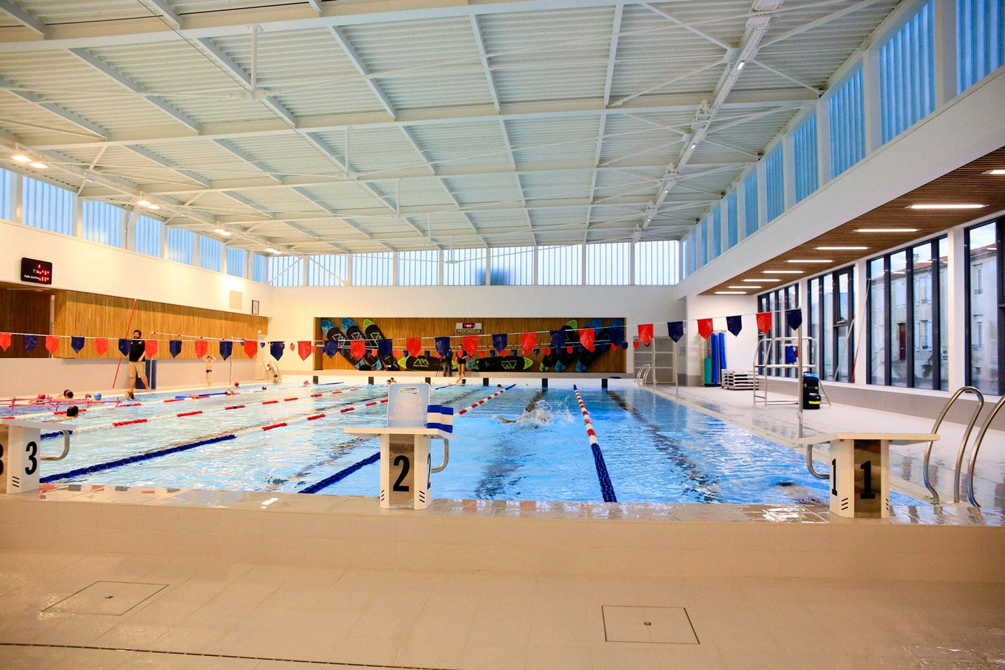 Some of our pools propose swimming lessons for beginners or for swimmers wishing to perfect their technique, as well as life-saving sessions. These are also open to adults, and there are flipper-swimming lessons too, as well as sessions aimed at overcoming a fear of water. In summer, the swimming school also proposes lessons at the bathing area in L’Aiguillon-sur-Mer.