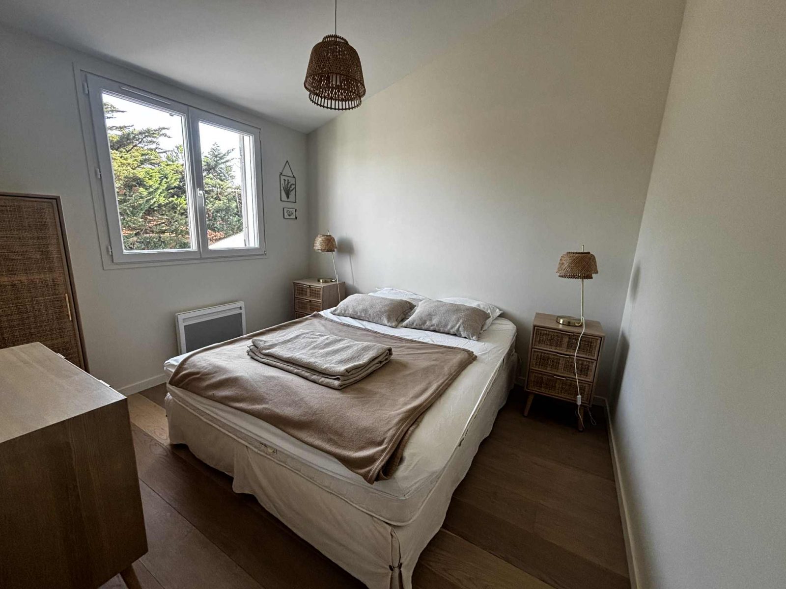 This tastefully renovated two-storey house comprises a kitchen area (ceramic hob, fridge/freezer, microwave), a living room with sitting area (sofa, television), a first bedroom with 1 x 160cm bed and a shower room with WC and washing machine. Upstairs, a landing leads to two bedrooms with 160cm beds and a third bedroom with two 90cm beds and a shower room with WC. Garage. Fenced courtyard and lovely wooden terrace with awning. The house is located 400 m from the shops and 200 m from the fine sandy beaches of La Faute sur Mer.