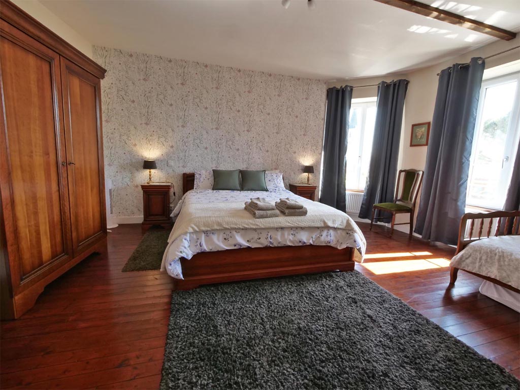 Upstairs, there are 3 bedrooms: a large bedroom (30m²) with a double bed (160 x 200), a single bed (90cm) and a cot. The second bedroom has 2 single beds (90cm). The third bedroom has a 160 x 200 bed.
