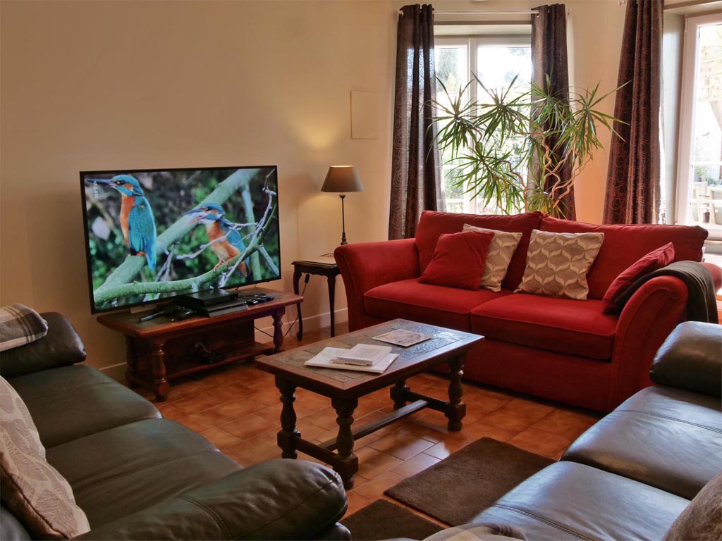 Inside this 120m² gîte is a lounge with three sofas - two of which are leather, TV and DVD player. The kitchen is equipped with oven, hob, dishwasher, washing machine, toaster, kettle and coffee maker. The dining table can seat up to 8 people.