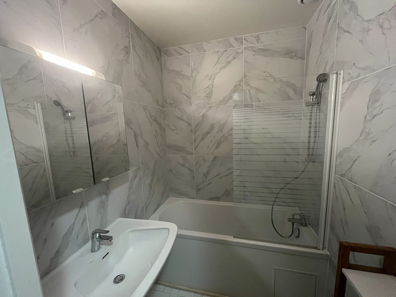 Close to the shops: bakery, co-op, fishmonger's, butcher's, chemist's, tobacconist's, etc.